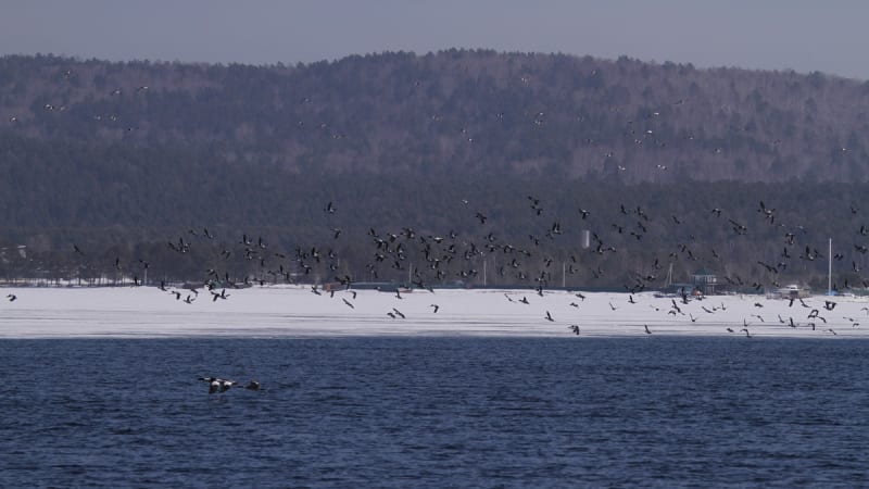 Записи, свидетельствующие о её существовании на Байкале, сохранились ещё с 30-х годов прошлого столетия. Чуть поменьше зимовка в Красноярском крае. Она тоже находится недалеко от Красноярской ГЭС, но всё же существенно отличается от залива в Листвянке, где сохранились естественные, природные условия. В Красноярске птичий дом техногенного происхождения.