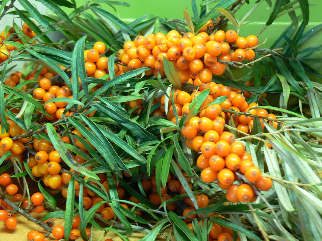 Облепиховое масло. Получить масло в домашних условиях очень сложно. Для этого плоды облепихи помещают в стеклянную банку и оставляют на несколько дней при комнатной температуре. Всплывшее масло собрать ложкой и слить в бутылочку. Выжимки после получения сока можно подсушить, залить подсолнечным маслом (1:1,5) и, помешивая, настоять три недели. Затем слить и хранить в холодильнике.