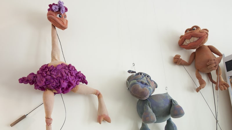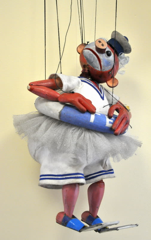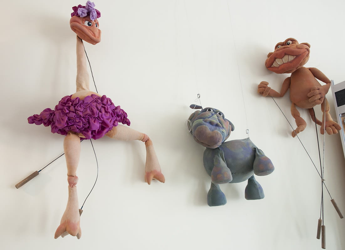 Есть в коллекции театра и огромные ростовые куклы, когда внутри костюма находится артист. Одна из таких и была продемонстрирована: в костюме белой медведицы Буры была актриса Наталья Уткина. Самые «заслуженные» куклы «Аистёнка» на выставку не попали. Это персонажи самого старого из оставшихся в репертуаре спектаклей театра «Таинственный гиппопотам», который идёт уже 35 лет. Спектакль радует детей и сейчас, поэтому гиппопотам и другие его товарищи по спектаклю работают – их нельзя выставлять длительное время, они не должны покидать стены театра.