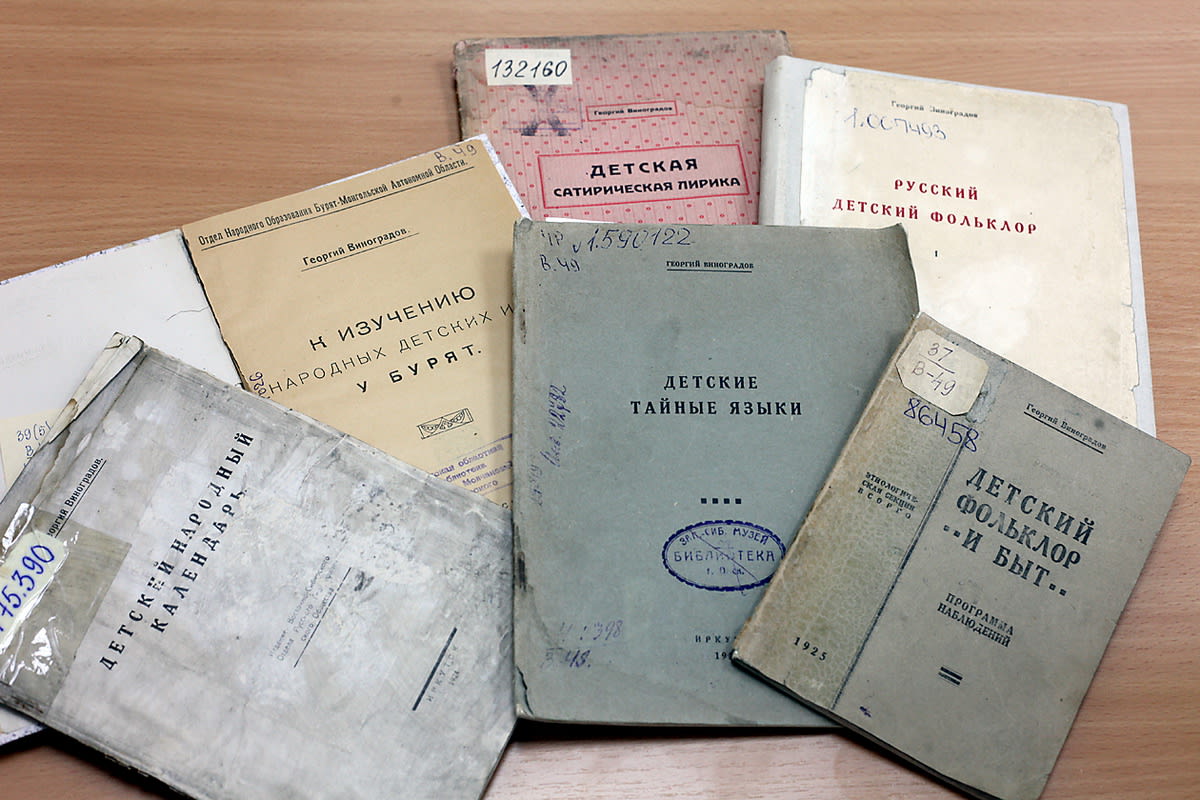 Тонкие книжечки, которым почти век. В редком фонде «Молчановки» сохранены прижизненные издания этнографа Георгия Виноградова, посвящённые детскому фольклору. Одна из книг – с дарственной надписью учёного. Это уникальные издания, поскольку труды Виноградова считаются библиографической редкостью. «Иркутский репортёр» отыскал в архиве периодики «Молчановки» статьи из газеты «Власть труда», открывающие новые обстоятельства последних месяцев жизни Виноградова в Иркутске в 1930 году, когда он был вынужден навсегда покинуть город и уехать в Ленинград.