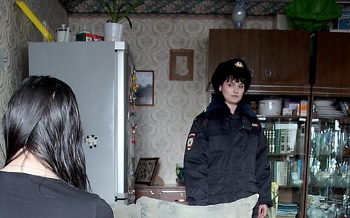 На последнем этаже обычной «хрущёвки» нас уже ждёт грузная бабушка – облокотившись о перила, она нависает над поднимающимися сотрудниками полиции и сурово их отчитывает: не дают девочке покоя, она и так уже расплатилась наказанием, страдает. И вообще она ещё спит. На часах – два часа дня…