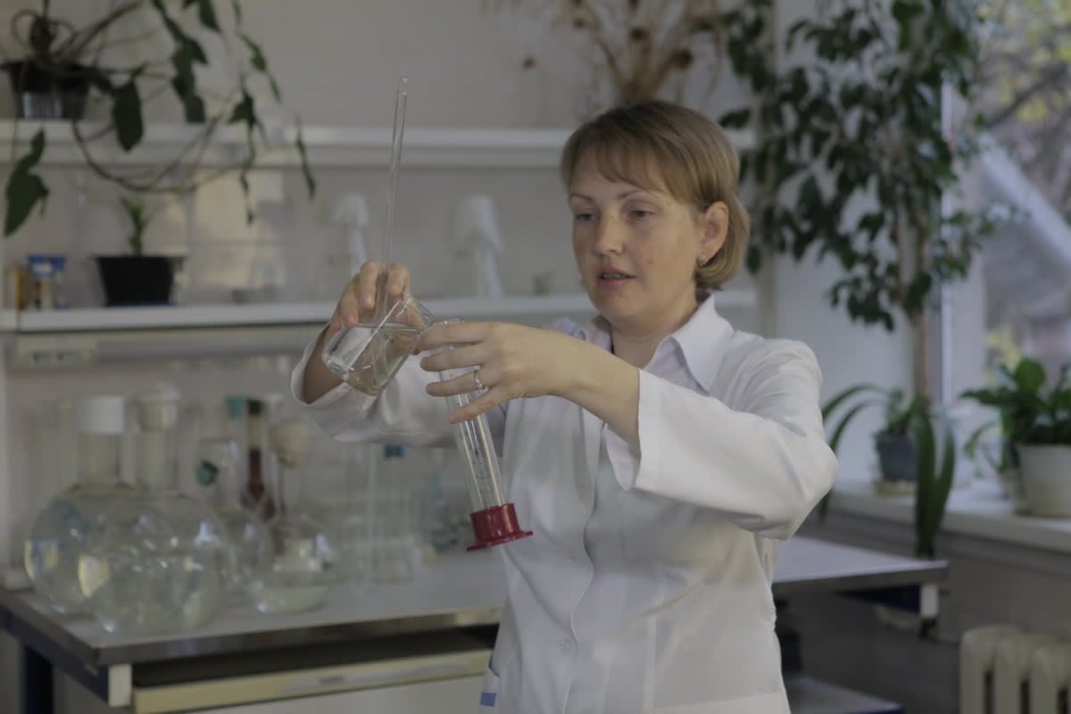 – В химико-бактериологической лаборатории мы контролируем около 80 микробиологических, химических и некоторых физических показателей, – рассказала инженер-химик Татьяна Евгеньевна Зинина. – Мы изучаем и состав воды в реке – это необходимо для того, чтобы знать, от чего её нужно очищать. О важности обеззараживания не стоит и говорить, ведь многие вирусные заболевания передаются водным путём. Необходим и контроль после каждого этапа очистки – после смесителя, после отстойников, после фильтров, – чтобы в дома потребителей поступала качественная и безопасная вода. В зависимости от результата приходится варьировать подачу реагентов. К примеру, в период паводка вода сильно меняется, становится грязной, соответственно, мы должны увеличить расход коагулянта. Проверяем воду и на жёсткость.