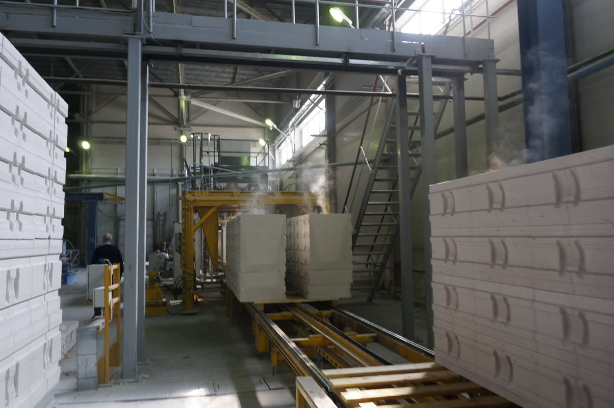 В 2014 году завод выпустил 137 тысяч кубометров газобетонных блоков. Сегодня в производстве задействованы три автоклава немецкой фирмы Machinenbau Scholz, которые выдают 550 кубометров продукта в сутки. Грандиозность этого сооружения можно представить, если обозначить его параметры. Один автоклав – длиной порядка 40 метров, диаметром 3 метра, весом 70 тонн. Он вмещает в себя поезд из 18 массивов. На сегодняшний день производственный процесс на заводе полностью автоматизирован.
