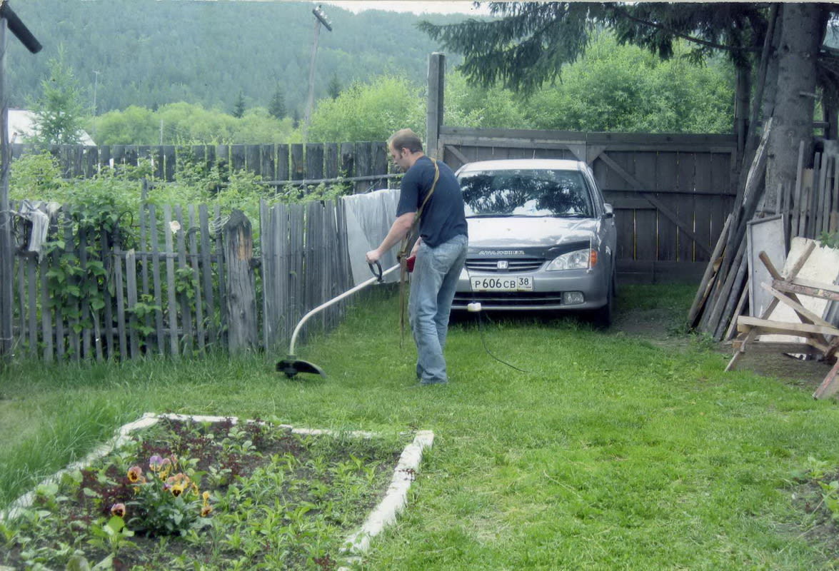 Ограда у нас 25 метров длиной, и все имеющиеся дорожки за лето три-четыре раза скашиваются газонокосилкой – и взрослым хорошо, и детям есть где поваляться, поиграть… На участке две большие клумбы с цветами. И на столбиках штакетника, и на заборах, различных постройках стоят или висят корзины с цветами и радуют глаз. Если моя идея кому-то понравилась, советую реализовать. Удачи!