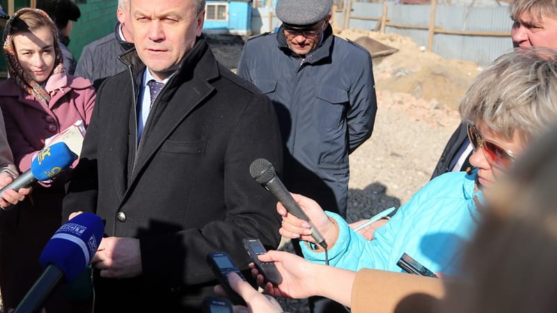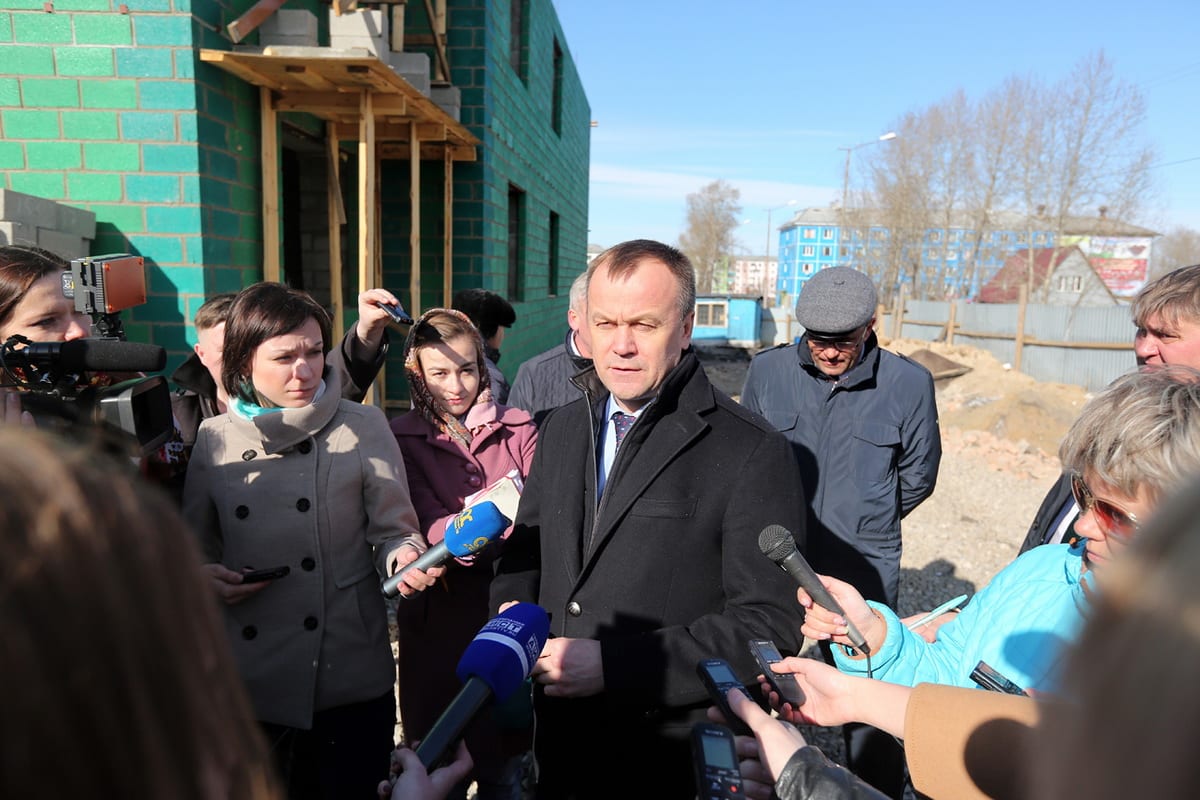 Сейчас на стройплощадке стоят не до конца возведённые два трёхэтажных дома на 112 квартир общей площадью 6 144 квадратных метров. Губернатор области Сергей Ерощенко приехал лично проконтролировать строительство домов для переселенцев из ветхого и аварийного жилья.