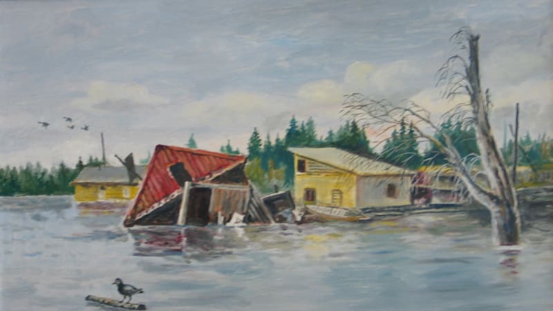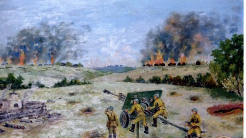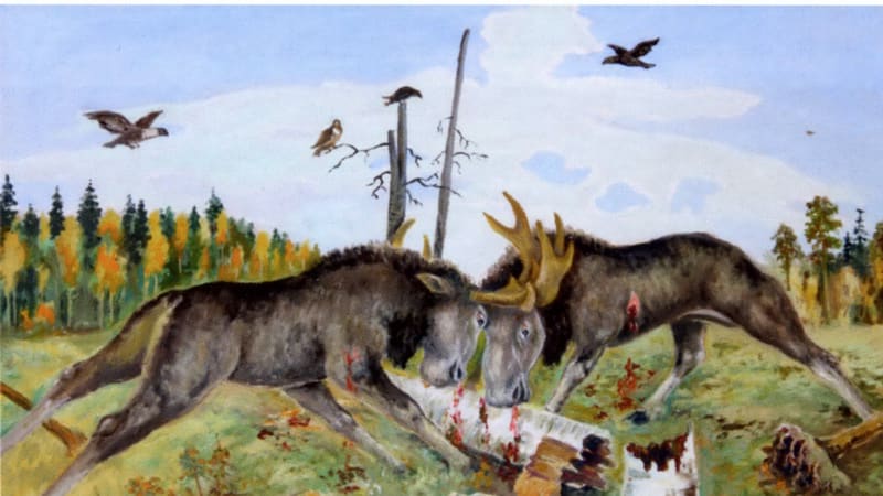 Надо сказать, визит наш к Зарукину порядком затянулся. Гостеприимный хозяин и чаем напоил, и свои живописные работы показал, а их у него многие десятки! Портреты, пейзажи, натюрморты, жанровые картины! И что меня поразило больше всего – многие его полотна созданы, когда их автору было за 90! «Сибирский пейзаж», к примеру, где на фоне северной реки доминируют старая, полуиссохшая сосна и поросль молодых ёлочек, заглядевшихся на водную стихию. Смотрю на дату создания: 2013-й. Художнику пошёл уже 97-й год. Тот же период отмечен такими превосходными пейзажами, как «Вечер на море», «Сибирское лето», «Навигация в селе Ербогачён». Впечатляет эпическое полотно «Как добывали победу». На картине запечатлён момент боя, наши солдаты отбивают атаку фашистских танков. Композицию завершает падающий объятый пламенем «Мессершмит», дым и всполохи взрывов передают атмосферу жестокой схватки. «Это живёт в моей памяти», – так прокомментировал сюжет картины солдат Великой Отечественной Георгий Зарукин. Пять лет назад, когда Георгию Степановичу было «всего-то» 93, им были созданы потрясающие по экспрессии холсты: «Пожар в тайге», «Рыбалка на реке Быстрой». Особняком стоит работа «Смертельный выстрел» – поединок охотника с медведем. В последний момент, когда косолапый уже подмял под себя человека, тот успел нажать спусковой крючок двустволки и зверь упал замертво, как бы обняв перепуганного до смерти мужчину.