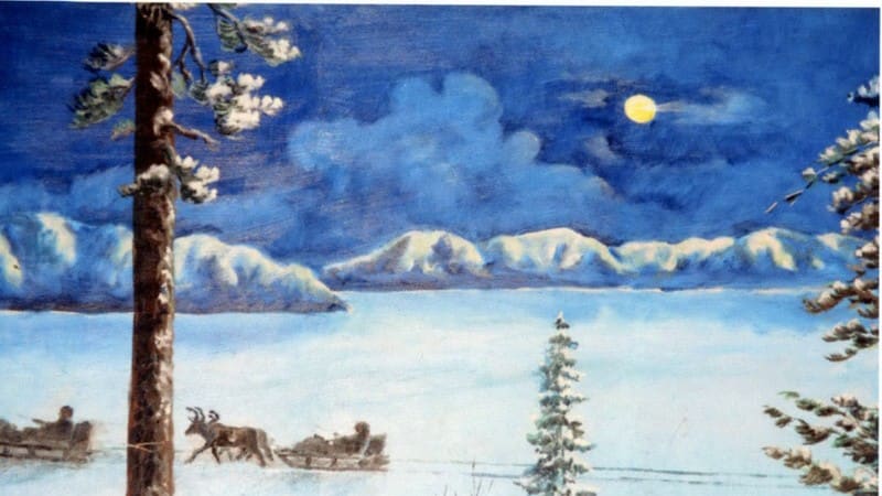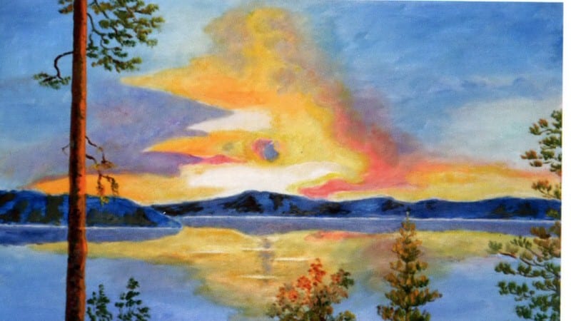 2011-й, по мнению Георгия Степановича, стал весьма урожайным в творческом плане. И я вновь прихожу в восторг. «Вечер на Чонском озере» – это что-то потрясающее по колориту, композиции. Закат с гаммой живых волшебных красок, как в зеркале отражается в притихшей воде, играет на ветках прибрежных сосен. Сказка! В этом же ключе решены такие работы последних лет, как «Северное сияние в Катангском районе в 1947-м году», «На Чонском озере. Катангский район».