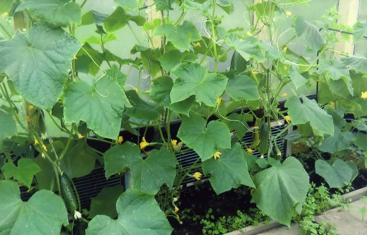 На второй год эксплуатации такой грядки я высадил двухнедельную рассаду огурцов уже не 9 мая, как в первый раз, а 17 апреля. Первый урожай был снят 25 мая. Но из своей практики могу сказать, что у нас высаживать их можно уже 10 апреля. Потому что в этот день я ежегодно выношу под дуги рассаду помидоров, сделав их перевалку перед этим из малых горшков в трёхлитровые. На рассаду их сею в конце февраля. Под дуги ставлю обогреватель (электрический), включая его при заморозках. Мощность его из расчёта 100–150 Вт на 1 кв. м укрываемой площади. 10 мая при высоте дуг 1 м рассада уже выбирает всё свободное пространство под ними и готова к высадке в теплицу, имея 2-3, а то и более цветущих кистей.