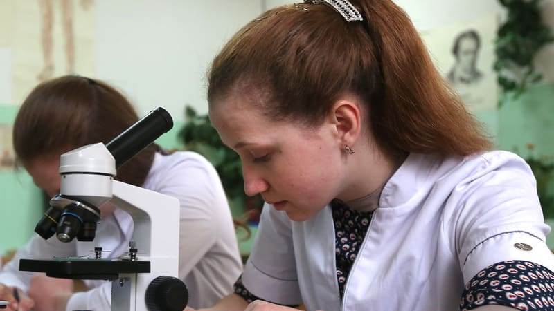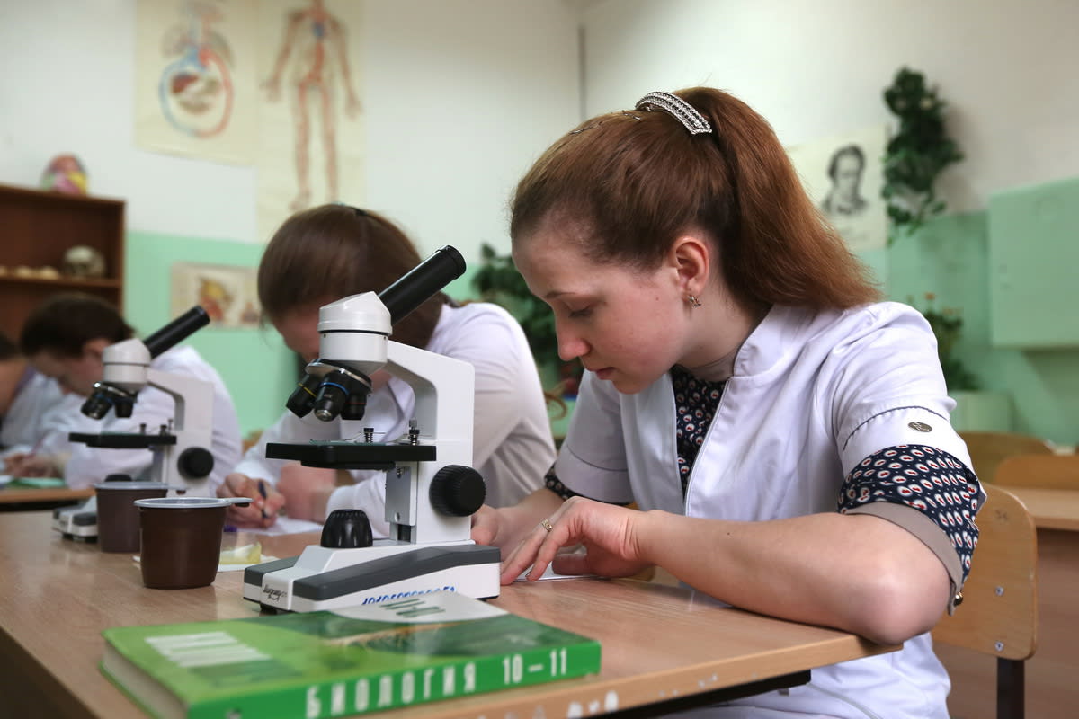 Курс обучения в медколледже длится четыре года. Сначала студенты проходят школьную программу за 10-11 классы, потом начинается специализация, медицинская практика. В колледже четыре отделения: акушерское, сестринское дело, лечебное дело и фармацевтика. После того как среднему медицинскому персоналу прибавили зарплату, конкурс на одно место постоянно растёт. В этом году на разных специальностях он составлял от 4 до 8 человек на место.