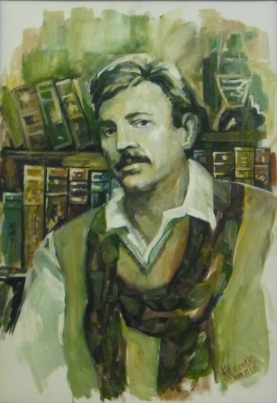 – С Сашей Вампиловым мы познакомились в 1969 году, тогда он ещё не был таким известным. Встретились мы на квартире у театрального режиссёра Георгия Гаврилова. Я тогда работал над портретом актёра Юрия Красика, как раз в театре Охлопкова была премьера спектакля «Сирано де Бержерак», где он исполнил главную роль. И вот в комнату со словами «Что ты пишешь?» влетел Жора Гаврилов, а я ему и говорю, а что надо писать, тогда Гаврилов восторженно сказал: «Я только что прочитал «Утиную охоту», ребята, это – будущий Чехов», – и указал на скромно сидящего в комнате Сашу Вампилова. Тогда я ему сказал: «Хорошо, а писать-то не на чем». Он, недолго думая, подошёл к шкафу, оторвал лист ДВП и протянул мне. Я тогда начал работу, но так получилось, что закончил её только через много-много лет. Но это единственный портрет Вампилова, который писался при его жизни.