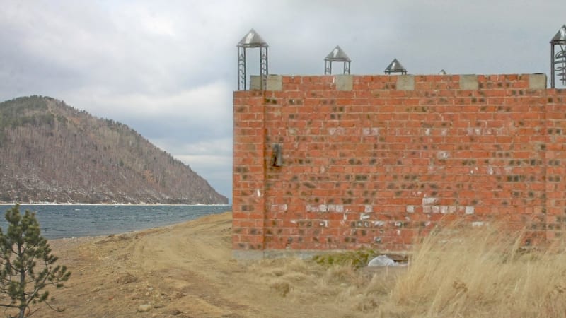Вместе с жителем садоводства Леонидом Кузнецовым мы обходим окрестности. Выше по течению Ангары доступ к реке перекрыт – в паре-тройке метров виднеется металлический мостик, который уходит прямо в воду. Ниже по течению – внушительный каменный забор метра в два с половиной вдоль узкой полоски берега. Заметно, что за забором идёт строительство, рабочие обшивают крышу свежими досками. Местные говорят, что этот участок у воды незадолго до ареста выкупил Михаил Ходорковский. Потом землю несколько раз перепродавали, кто сейчас владеет имуществом – неизвестно. Хотя ясно как белый день, что усадьба возведена с нарушениями. Слишком близко массивный забор подступил к Ангаре. Проходим ещё несколько десятков метров и снова натыкаемся на преграду. Прямо на берегу стоит деревянная баня, прямо и до воды идёт настил. Дальше пути нет.