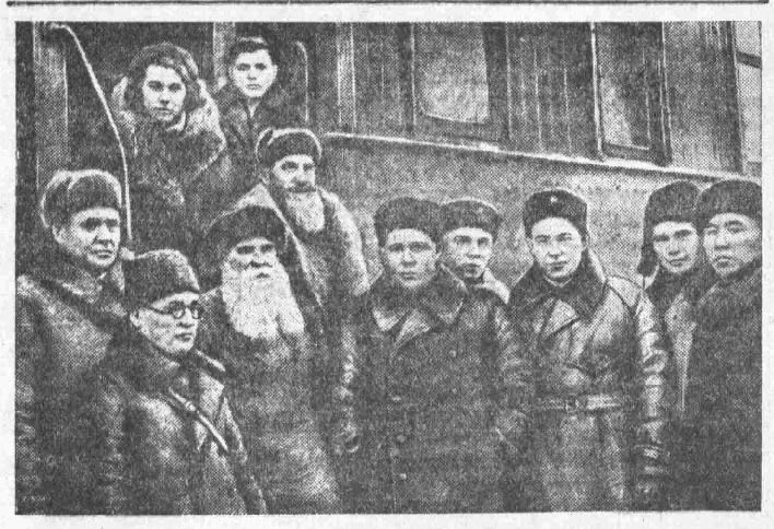Делегация иркутян, отвозивших подарки фронтовикам, вернулась назад в самом начале апреля 1942 года. А подарки были вручены на фронте 11 марта. «Наши встречи с бойцами на фронте – незабываемые, радостные дни. Это такие дни, изумительная сила которых всегда будет воскрешать в нашей памяти живые образы героев», – писал Кунгуров. Он рассказывает о гибели фашистской «голубой дивизии»: «На широких снежных полях, в блиндажах, канавах и пустырях валяются тысячи трупов этой золотопогонной мрази». Иркутской делегации подарили один из «эрзац-мундирчиков», не спасавших от холода, дабы показать трудящимся, как Гитлер одел своих сторонников. Иркутские делегаты встречались с бойцами, бравшими Малую Вишеру, Тихвин: «Делегаты обнимали и со слезами целовали героев-воинов». «Гордостью переполнились наши сердца, когда мы узнали, что во всех решающих боевых операциях сибиряки, наши земляки, показали себя достойными сынами родины… Нам передавали, что немцев охватывает жуткий страх перед сибиряками. Чтобы сломить, поколебать стальные ряды сибиряков, немцы издали десятки спецприказов, один чудовищнее другого, бросили в контратаки целые полки автоматчиков, устраивали сплошной миномётный огонь». По словам Кунгурова, командир «энской армии генерал Яковлев» сказал: «Эх, и хороши же сибиряки, им не страшны ни мороз, ни снег, ни вьюга. Бьют они немцев, скажу я вам прямо, смертным боем, бьют и плакать не дают!» (генерал-лейтенант Всеволод Яковлев, командовавший 52 армией. – Авт.). Начальник цеха завода им. Сталина Л.П. Ипполитов, как старый батареец, лично выстрелил из 152-миллиметрового орудия по позициям фашистов, уничтожив блиндаж. Ночью артиллеристы показали иркутянам работу крупнокалиберных орудий, назвав это «залпами папаши Трухановича» (путевого обходчика депо Слюдянка М.Л. Трухановича). От папаши Трухановича лучший командир орудия старший сержант Бобров получил серебряный портсигар.
