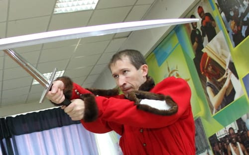 – У меня своя мастерская со слесарной и кузницей. И всё, чем мы дерёмся, что на нас надето, сделано в нашей мастерской под наши нужды. Единственное – клинки приходится заказывать заводские. В кустарных условиях трудно сделать тонкий и гибкий клинок для фехтования необходимых габаритов, чтобы он отвечал требованиям безопасности: не гнулся, не ломался, но сгибался на уколе. А если и ломался, то под нужным углом, а не с острыми кусками. Этого смогли добиться лишь специализированные заводы, которые сегодня и выпускают клинки для спортивного фехтования. Сабельные и мечевые клинки мы можем изготовить, а вот шпажные – нет. Но эфесы мы делаем самостоятельно. Простую шпагу можно за 2-3 часа сделать, но это если не брать резьбу по металлу. А на какие-то сложные реплики оригинального оружия может уйти и полгода.