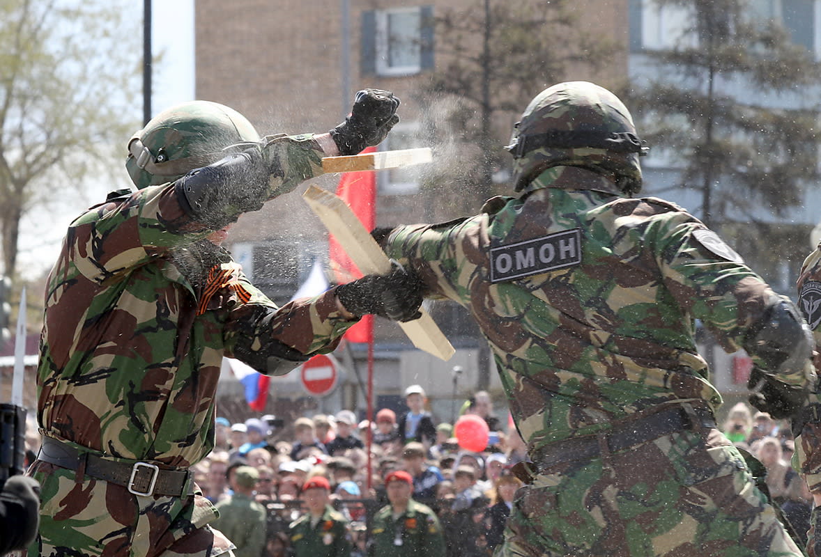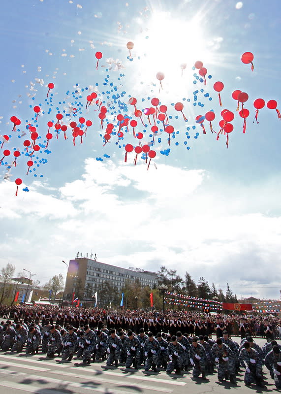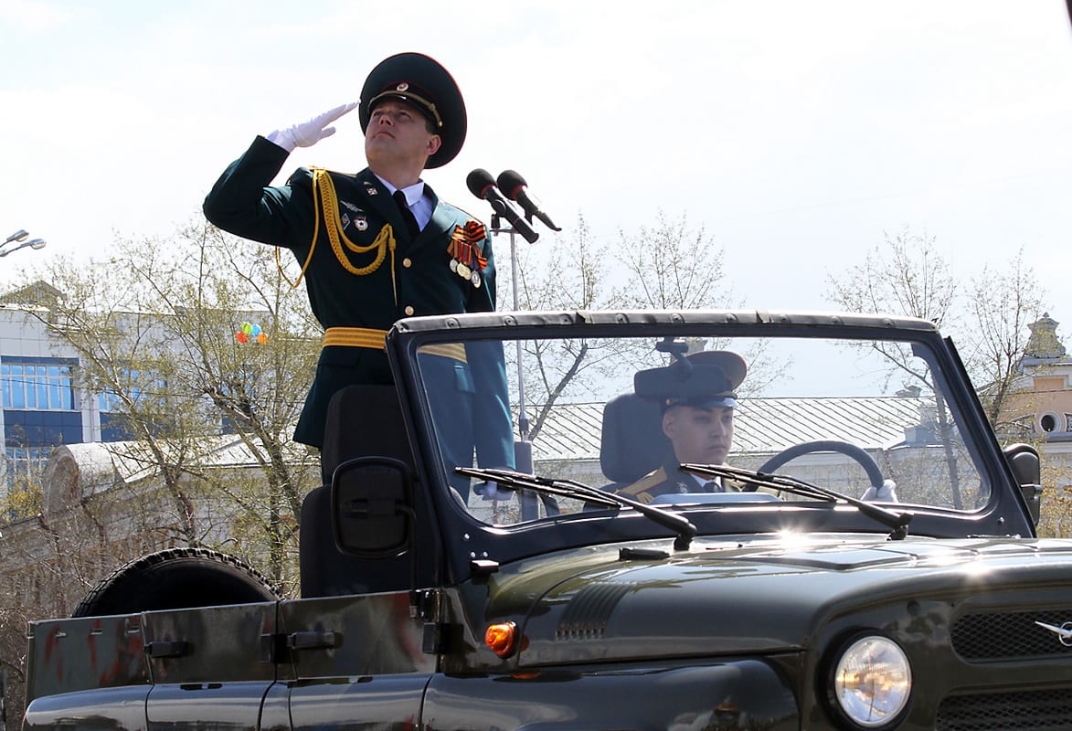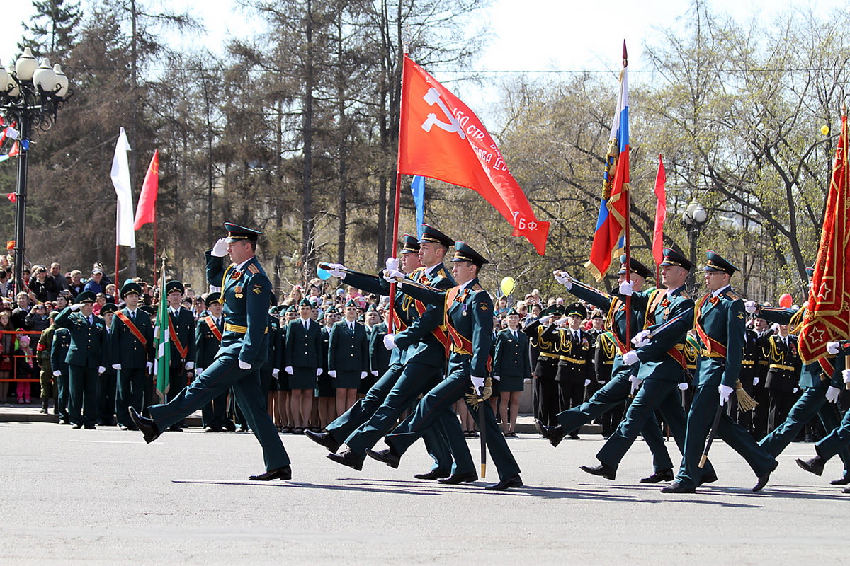В торжественном шествии в Иркутске на площади им. Кирова приняла участие Гвардейская ракетная Витебская ордена Ленина краснознамённая дивизия, воевавшая во всех крупнейших сражениях Великой Отечественной войны. 32 военнослужащих дивизии удостоены звания Героя Советского Союза и один – Героя России. В праздничной колонне прошли военнослужащие Иркутского соединения ракетных войск стратегического назначения.
