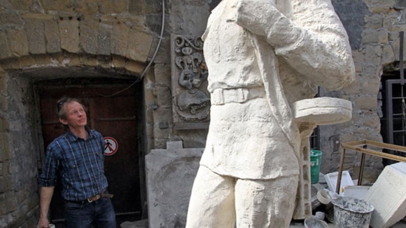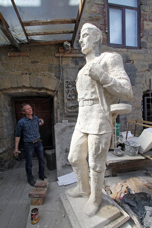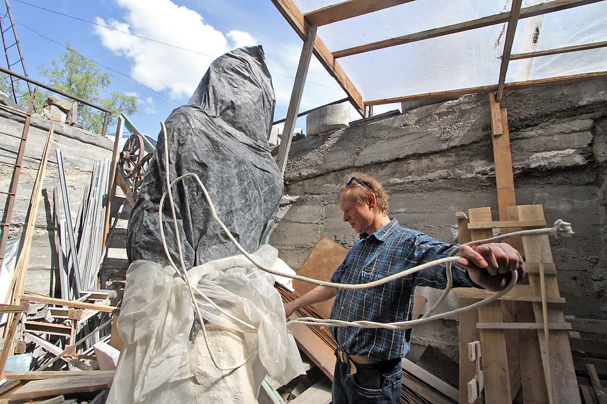 – Мы делаем памятники по заказам – памятник Победы, памятники героям для мемориалов в различных районах области. Госбюджет выделяет деньги ко Дню Победы, чтобы героям поставили мемориалы, как раньше везде ставили памятники Ленину. В прошлом году поставили памятник в Заларях, с портретным сходством. В этом году, правда, не задалось. Я не хочу рассказывать подробно, потому что всех деталей не знаю, но в общем история звучит так – мэр одного из районов области или глава поселкового поселения, короче, какой-то градоначальник, заказал памятник на главную площадь. Хочу, говорит, чтобы у меня герой стоял. Мы его сделали – трёхметрового роста, не конкретному человеку, это такой Воин-Победитель. А пока делали, этого главу посадили – вроде как за воровство, хищения бюджета, я точно не знаю. В результате денег нам не заплатили, а памятник стоит во дворе мастерских.