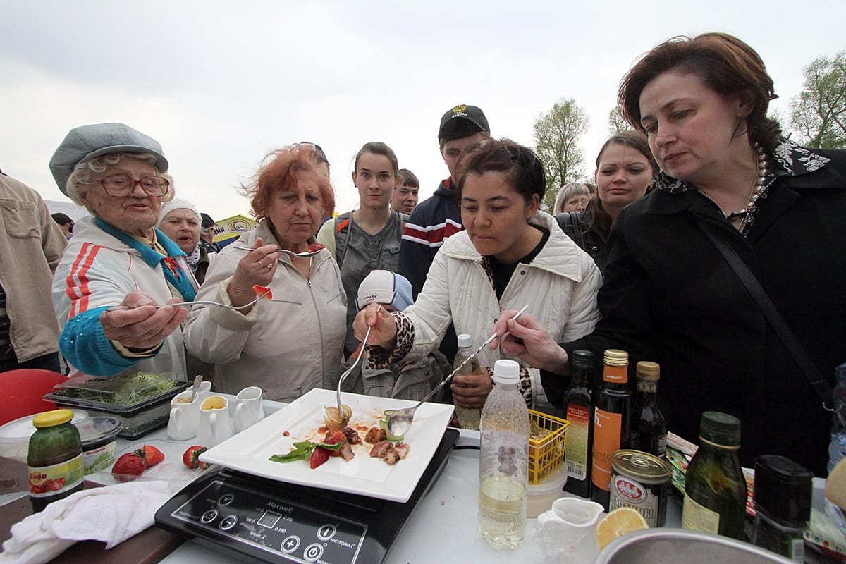 К обеду площадь возле памятника Александру III наводнили гости. Особенностью кулинарного турнира стало то, что все блюда готовили исключительно из местных продуктов. Здесь же их можно было попробовать. Погода не испортила аппетит гостей.