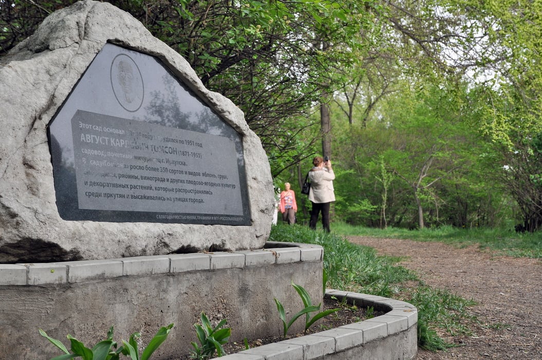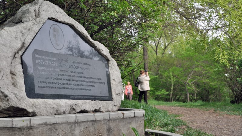 Рассказ об удивительном для местных широт саде начинается в 1907 году. Тогда в поисках лучшей доли в Иркутск приехала семья Томсонов. Главе семейства Августу Карловичу в то время было 36 лет. Он, сын лесника, в прежние времена батрачил в садах одного из поместий. Плохое отношение землевладельца заставило Томсона бежать из родных мест в Латвии, которая тогда была частью Российской империи, вглубь страны. За несколько лет он побывал во многих городах и деревнях. Его путешествие закончилось в Иркутске, где он впервые увидел дикую яблоню и смородину. Здесь бывший садовник смог устроиться маляром на железнодорожной станции «Иннокентьевская». Но ему хотелось работать на земле. «В итоге он задался идеей создать в Иркутске плодово-ягодый сад, – рассказала Вера Шлёнова. – Конечно, к его желанию местные отнеслись без энтузиазма, считали чудаком. На многочисленные про­шения однажды ему последовал ответ: «Малярам положено быть малярами, и нечего совать нос в науку». Но это не остановило Августа Карловича, продолжившего самостоятельные поиски подходящего участка. Спустя семь лет крестьяне Подгородно-Жилкинского сельского общества выделили ему в 12-летнюю аренду под разбивку сада примерно 10 десятин земли, которая тогда не относилась к Иркутску, а сегодня расположена на территории Ново-Ленино.