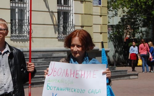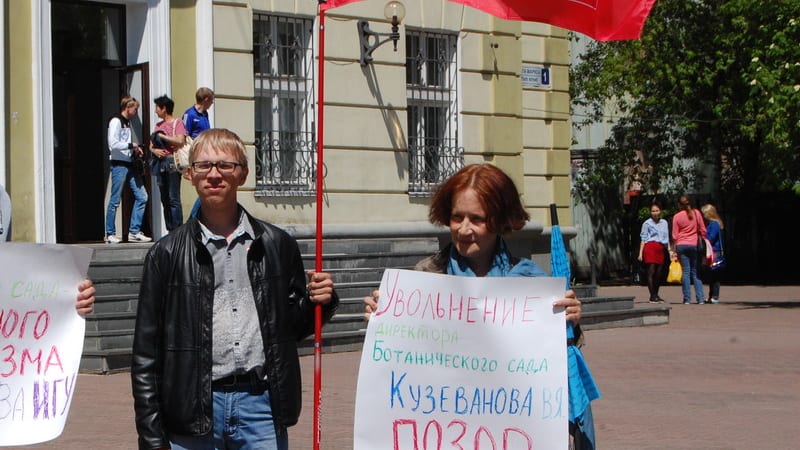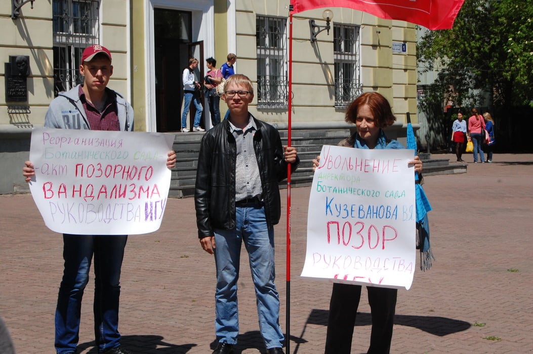 Группа иркутян провела пикеты у административного здания ИГУ и мэрии, протестуя против увольнения директора Ботанического сада госуниверситета