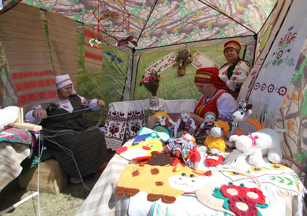 Закончился обзор выставкой Союза народных мастеров Прибайкалья из Иркутска, которые занимались широким спектром ремёсел – красили батик, лепили из глины, занимались прочими декоративно-прикладными видами искусства и проводили мастер-классы для детей.
