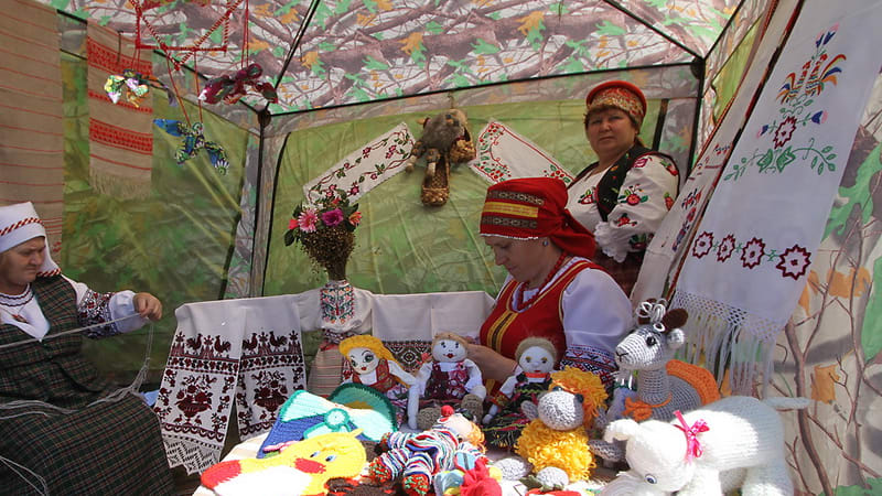 Праздник начался в полдень – участники народных коллективов прошли к сцене через несколько арок из берёзовых ветвей, украшенных разноцветными лентами, и начался концерт, на котором были представлены, наверное, все варианты обрядов и песнопений, посвящённых Троице, которые существуют на земле иркутской. Тем временем «Иркутский репортёр» заинтересовался работами народных мастеров, которые также были представлены в рамках этого фестиваля. Интерес вызывали отличия ремёсел, существующих в разных районах области. Понять особенности помогла искусствовед Наталья Ленкова, ведущий специалист Дома народного творчества.