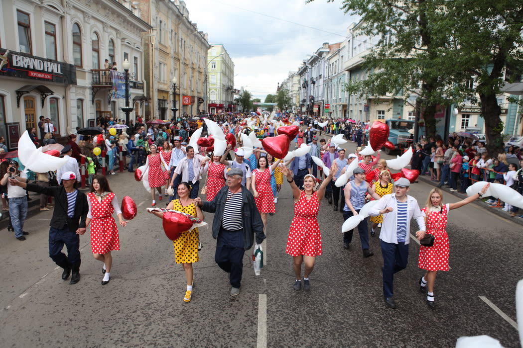 Шахтёрский край славится не только трудовыми подвигами, но и творческими и талантливыми людьми. Их жизнь порой незатейлива, но так похожа на сюжет из фильма. «Любовь и голуби» представили сотрудники «Востсибугля» и рудоремонтного завода на торжественном шествии, посвящённом Дню города. История семьи из Черемхова, родины автора фильма, – пример победы любви над любыми трудностями и невзгодами, огонёк, который толкает мужчин на подвиги, а женщины от его тепла расцветают как весенние цветы. Весёлая команда в ярких костюмах, танцующая под переливы деревенской кадрили, не оставила равнодушными ни героев, ни зрителей мероприятия.