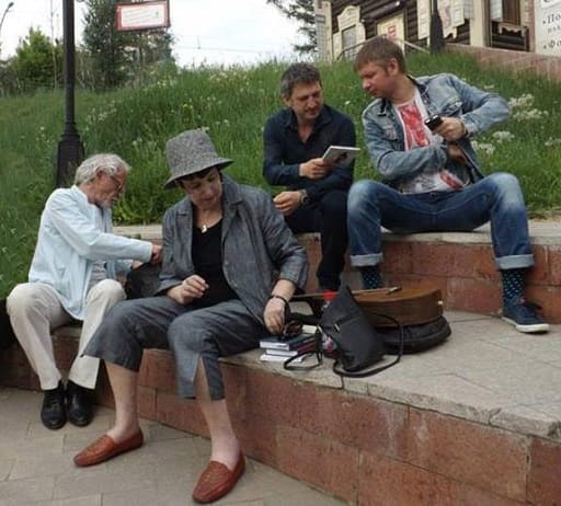 М.К.: Город – супер, мы его увидели с разных сторон, прошлись по его улицам ночным, утренним, дневным, с китайцами, без китайцев, с таксистами, без таксистов, с поэтами, без поэтов. Сходили на прекрасный концерт Вероники Долиной, выпили какое-то количество алкоголя в прекрасных заведениях, вкушая прекрасные блюда. От конца до начала излазили ваш… 160-й, да?