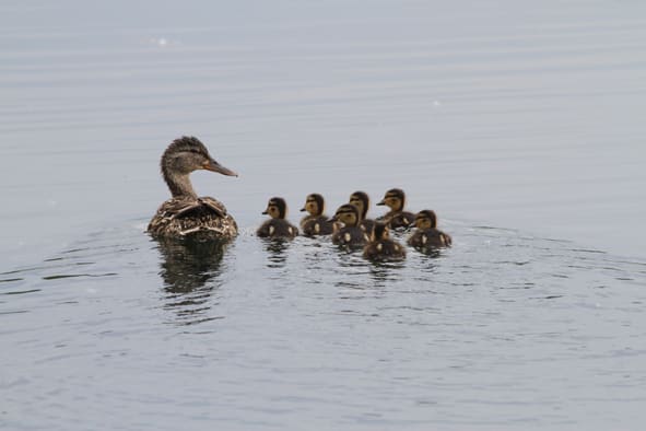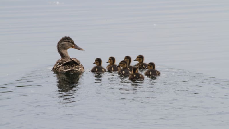 – Утятам не больше недели. Раз, два… семь штук. Летать не умеют, зато уже отлично плавают. Здесь должно быть как минимум три выводка, я насчитал в прошлые выходные, – отмечает орнитолог.