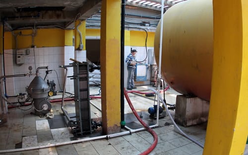 – Но это в теории. На практике нужен котёл, который греет горячую воду, она пропускается через теплообменник, нагревающий питьевую воду, а та подаётся к квасному суслу. Нужна сироповарка, которая мешает сироп, чтобы не получился леденец в две тонны весом, и парогенератор, чтобы варить сироп из сахара не пятнадцать часов, а сорок минут при температуре 190 градусов, – с увлечением пускается Евгений в объяснения технологических тонкостей.