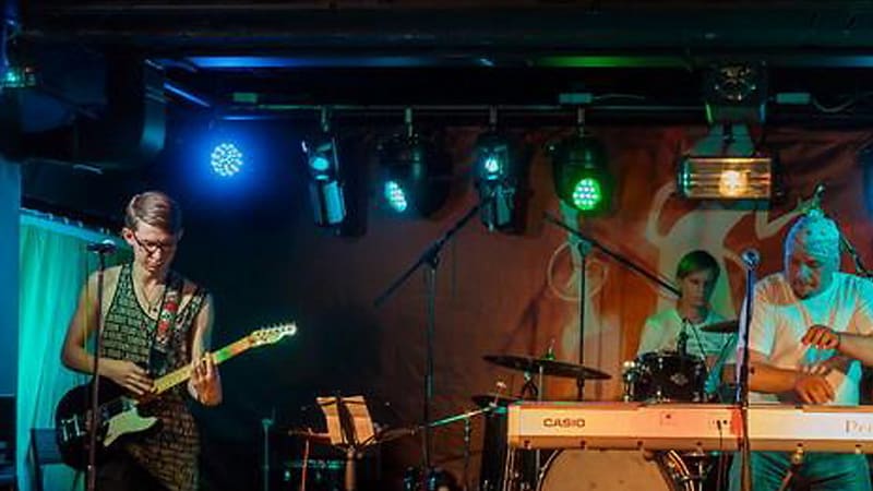 – Я знал четыре аккорда, пел девчонкам песни. Вообще, я меломан – у меня большая коллекция музыки. Покупал, слушал, сына Илью этому научил – ему сейчас шестнадцать, он у меня с четырнадцати лет по сцене носится! Но теперь больше он меня учит, – вспоминает истоки своей неожиданной музыкальной карьеры Евгений. – Получилось совершенно случайно – мы познакомились с Антоном, нашим клавишником. Они с Ильёй сейчас пишут песни, делают аранжировки, я-то играю по принципу: «Просто скажите, куда мне на грифе нажимать», а то они как начнут переходы из одной тональности в другую через тонику!