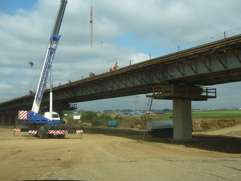 Менее чем за полгода на 100% выполнено устройство земляного полотна, уложено восемь металлических водопропускных труб длиной от 27 до 67 метров, из зоны дорожной полосы вынесены кабели связи. Полным ходом возводятся развязки со сталежелезобетонными путепроводами. Металлические конструкции пролётных строений в районе Ново-Разводной уже смонтированы.