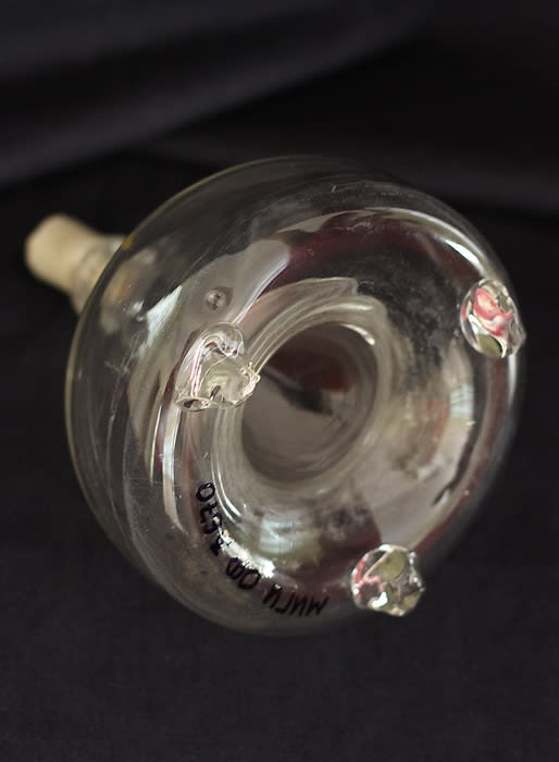 Надо сказать, что подобные мухоловки использовались довольно широко и в военное, и в послевоенное время. «Товарный словарь» за 1956 год описывает такой тип мухоловок как действующий: «Мухоловка – стеклянный сосуд, предназначенный для уничтожения мух». Существовали два типа мухоловок – разъёмная и цельная. В разъёмной мухоловке использовался колпак, прикрывавший основной сосуд. Цельная мухоловка представляла собой шаровидный сосуд на трёх ножках, имеющий два отверстия. Верхнее представляло собой невысокое горлышко со стеклянной пробкой или крышкой, а нижнее – в виде широкой воронки, входящей внутрь сосуда и расположенной в центре его дна. Судя по всему, именно такая мухоловка и хранится в Музее истории Иркутска. Такие мухоловки, обычно объёмом не более полулитра, изготовлялись в то время, как и другая стеклянная посуда, в основном вручную выдувным способом.
