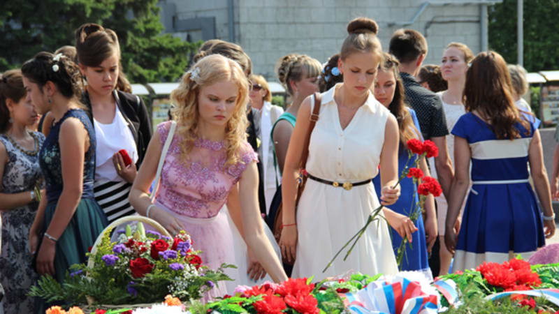 Ежегодно лучшие выпускники приносят цветы к Вечному огню