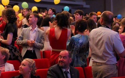 Выпускник школы № 47 Иван Людвиг немного опоздал на торжественную часть – в музыкальный театр он спешил после сдачи экзамена по физике. «Так вышло, что я непродуманно выбрал много экзаменов. Мне пришлось сдавать физику сегодня, в день губернаторского бала. Кроме того, вчера у меня был выпускной. Мне ужасно хочется спать, – делится Ваня. – Но хотя усталость берёт своё, мне интересно всё, что здесь происходит. Я не мог такое пропустить».