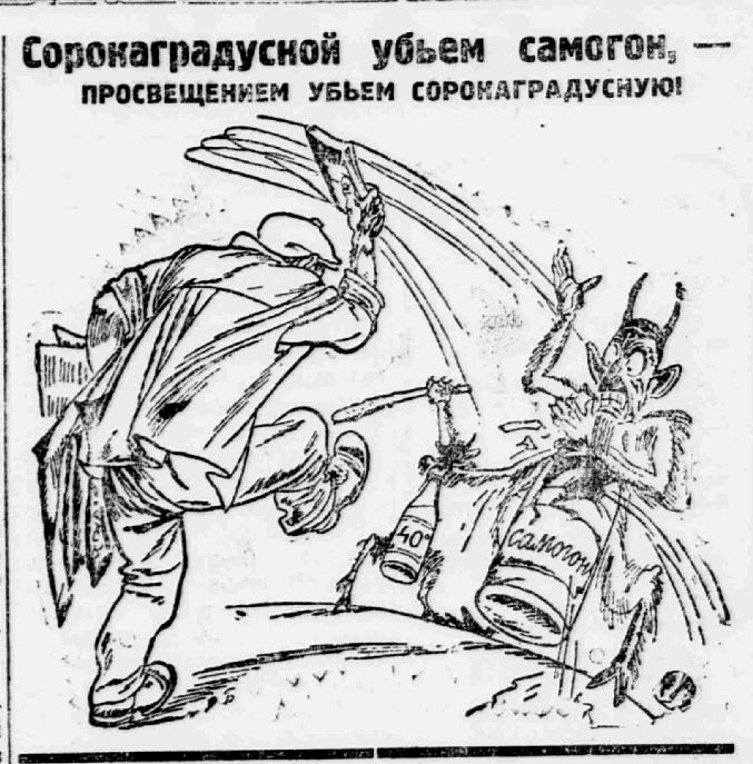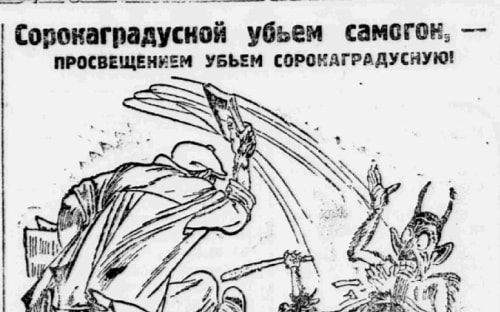 В январе 1930 года в иркутском Дворце труда состоялась первая городская конференция алкоголиков. «На конференцию приглашаются все интересующиеся», – игриво сообщала газета. Тема доклада: «Результаты лечения алкоголиков в Иркутске». Уже в 1929 году в центральной амбулатории Иркутска некто доктор Иванов успешно лечил больных от алкоголизма при помощи гипноза. Во «Власти Труда» даже опубликовали кусок из коллективного письма алкоголиков, морфинистов и кокаинистов: «Лечение и нравственная поддержка спасли многих из нас…». Однако истинным свидетельством того, что на самом деле нужно было государству, была картинка из «Власти Труда» с лозунгом: «Сорокаградусной убьём самогон, просвещением убьём сорокаградусную!». Сорокаградусную никто убивать не собирался, потому что это была хорошая статья доходов – на 1929 год, по данным Совнаркома РСФСР, доход от водки составлял 900 млн рублей. Как показало время, сорокаградусная тоже не убила «первача».