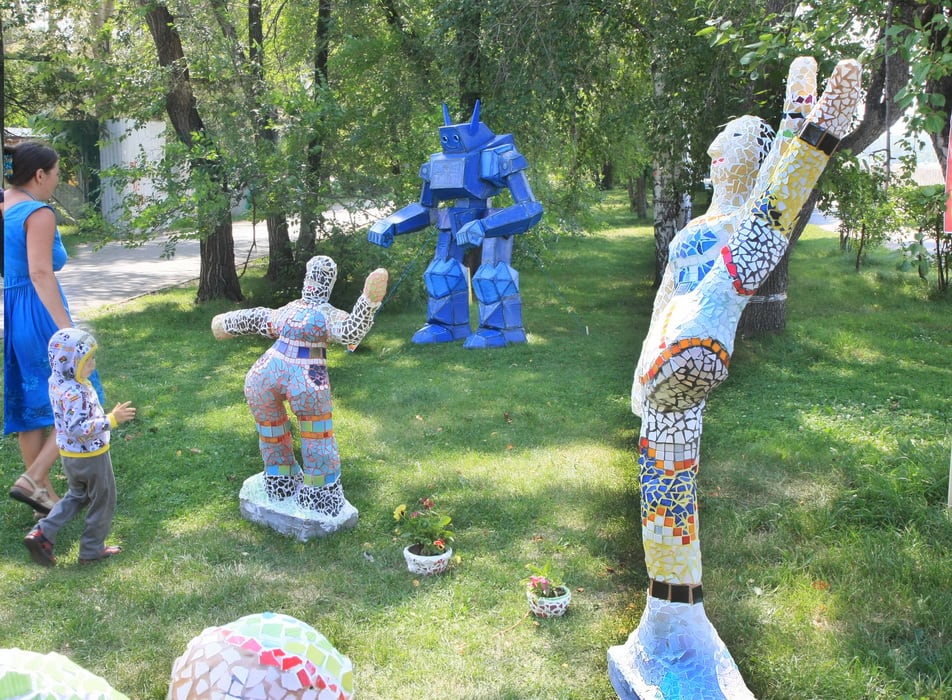 Гостей из Бурятии, Галину и её дочку Аяну, больше всего привлекли фигуры композиции «Танцор. Певец. Художник». Маленькой девочке очень понравилось, что она могла свободно дотянуться до ярких фигур и с видимым удовольствием трогала кусочки мозаики, касаясь глаз человечков. У мамы же освободилось время, чтобы оценить, какая из фигур принадлежит танцору, какая певцу, а какая – художнику. Видимо, авторы намеренно оставили зрителям место для фантазии. На площадке даже открылась дискуссия о том, кто есть кто в этой композиции.