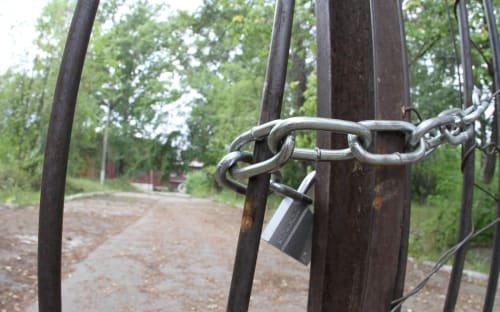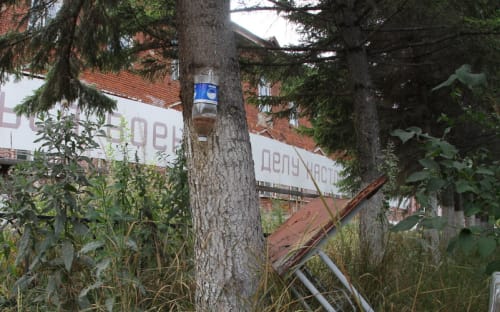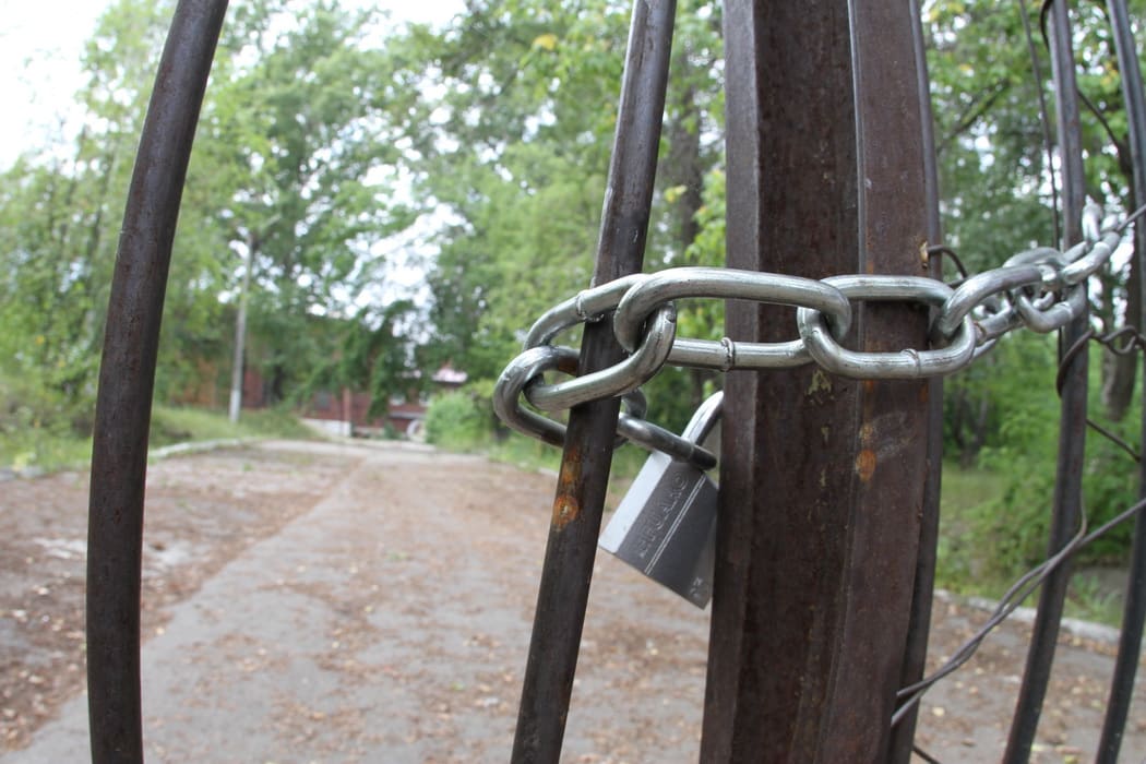 Почти за три часа, проведённых в городке, мы не встретили ни одного рабочего. Подойти к учебным корпусам, которые уже через год должны открыть двери воспитанникам, не удалось: ворота прочно закрыты на замок и обмотаны цепями. Именно за этим забором полтора месяца назад проводился субботник, его волонтёры украсили изображением беркутов и самолётов. За ограждением сегодня уже не видно следов уборки: здесь валяются бутылки, коробки, обёртки и фантики.