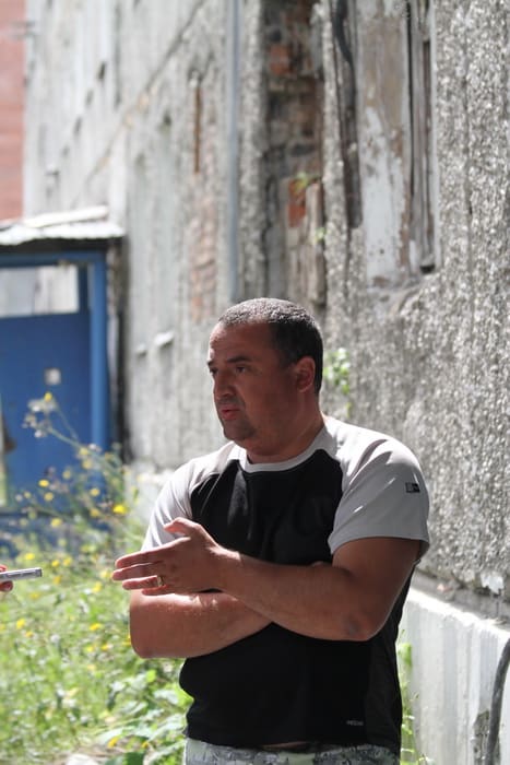 Юрий Чуприн с семьёй живёт на первом этаже. Он местный активист: собирает списки жильцов для администрации, связывается со «Славянкой», пишет письма губернатору. Мужчина считает, что призвать управляющую компанию к ответственности невозможно: формально жильцы не платят ни за содержание имущества, ни даже арендную плату.