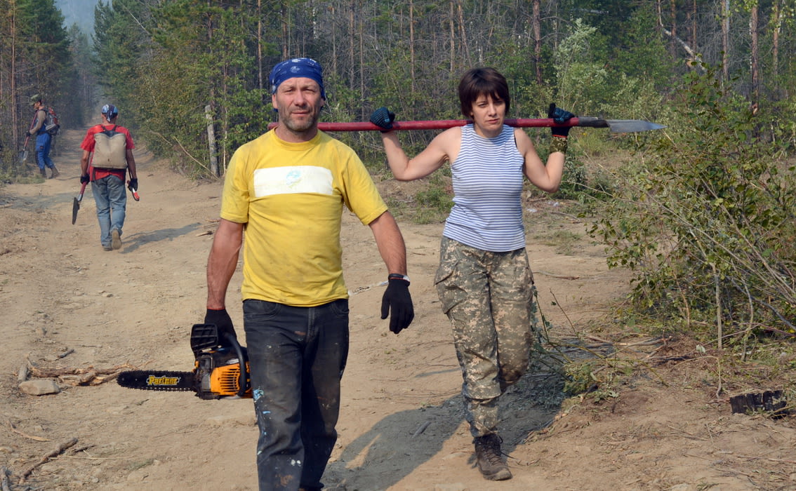 – У нас есть такая «Байкальская экологическая волна». Они занимались какими-то вопросами, связанными с охраной лесов, с чёрными лесорубами. Когда начались пожары – я их затюкала. Приходила и говорила, что нужно что-то делать, напрягала их всех с ситуацией по пожарам, я сказала, что ни пить, ни есть, ни спать не буду, пока что-то не будет предпринято. Тогда они дали мне телефон Кати Удеревской. Мы с Катюшкой созвонились, и она мне говорит: «В пятницу народ уезжает туда, тушить». Я сразу сказала – меня записывай прямо сейчас!