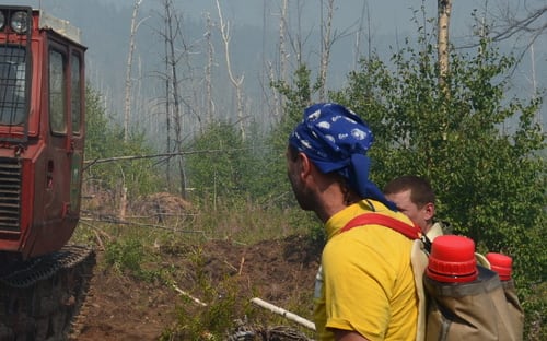 – Этот пожар начался в среду. Прилетал вертолёт, пилоты заметили дым и нам сообщили широту и долготу. Я часиков в шесть вечера поехал, посмотрел с горы – дыма не видно. Спустился – из-под горы идёт дым. Всё понятно, с участком определились, когда приехали на место, горело всего четыре-пять гектаров. Пожар был низовой. Жалко, что к этому времени уже успели сгореть лесные культуры, которые мы высаживали в 2013 году, – сосна в основном. Домой я вернулся в двенадцатом часу. А на следующий день, в четверг, рано утром заехали работники лесохозяйства, к половине третьего пригнали трактор. И вот, до сих пор работают…