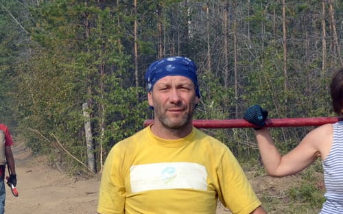 Олег, один из тех, кто первым побежал на «переброс Семёныча», – технический работник на местном телевидении, занимается оценкой качества видео и аудио. Узнал из Фейсбука, поехал, потому что в отпуске показалось глупым целыми днями лежать на диване. Дима-Димонстра – совсем иное дело. Он представитель «джиперов» из клуба «Протектор», бойцы которого были и в числе первых двигателей идеи волонтёрского пожаротушения, и они же предоставляли свои машины для первого рейда в Даниловку неделей раньше. К слову сказать, в группе оказалось ещё три «джипера» – Олег с авиазавода и Рома с Анатолием, представители одного местного туроператора. Последние трое работали, как первобытные звери, зарываясь в горящую тайгу и выдирая у ней полосы, очищенные от огня, совершенно автономно.