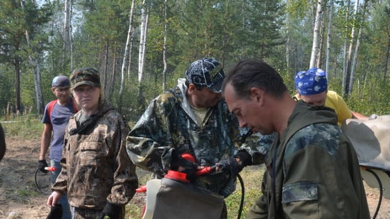Стоянка находилась в полукилометре от горящего участка. Бригада лесников сдерживала низовой огонь, вяло горящий на участке размером в 25 га. Начальник Бугульдейского участкового лесничества Геннадий Рыков объяснил, что добровольцы находятся на территории Ольхонского лесничества, на его Бугульдейской даче, в квартале 39, а горят выделы квартала под номерами 18, 19 и 20.