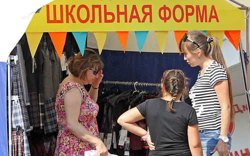 Но на первом месте по затратности всё же стоит форма. Деловой стиль одежды давно принят в школах. Но если раньше достаточно было строгого костюма для мальчиков и комплекта пиджак-юбка для девочек, то сегодня многие учебные заведения стремятся к единой форме. Хотя бы на параллель. Концепция приятная глазу (даже ученики Хогвартса носили форму), но обременительная для родителей. Многие школы заключили контракты со швейными фабриками, и цены на предложенную продукцию, мягко говоря, не радуют. Например, в некоторых школах ввели трикотажные жилеты. Стоимость такого жилета с шевроном-значком (эмблемой школы) – 1150 рублей. Красная цена этому изделию – 500 рублей. Брюки, юбки и рубашки закупаются отдельно, согласуется лишь цвет (например, брюки у всех парней должны быть чёрного цвета). Стоимость брюк с содержанием натуральных тканей – от 1000 рублей, юбка обходится в такую же сумму, цены на рубашки и блузки варьируются – 300–1200 рублей, их ученику нужно как минимум три.