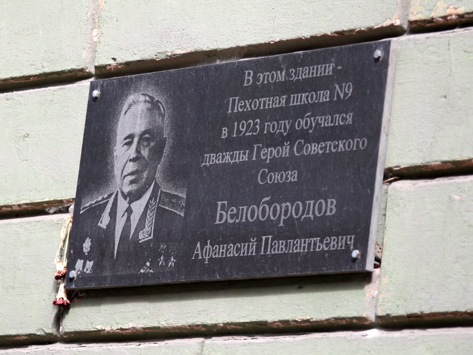 Мемориальная доска размещена на здании пехотной школы,