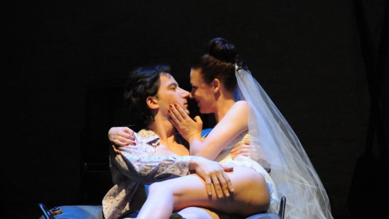 На деле же всё обстоит не так трагично. Сценическое действие носит, на мой взгляд, характер фарса. Зилов Александра Власова предстаёт перед нами утомлённым, рефлексирующим Дон Жуаном, как бы через силу исполняющим свой «донжуанский долг». Возможна такая трактовка? А почему нет? Вот только не хватает её обусловленности в контексте спектакля (но об этом уже было сказано).