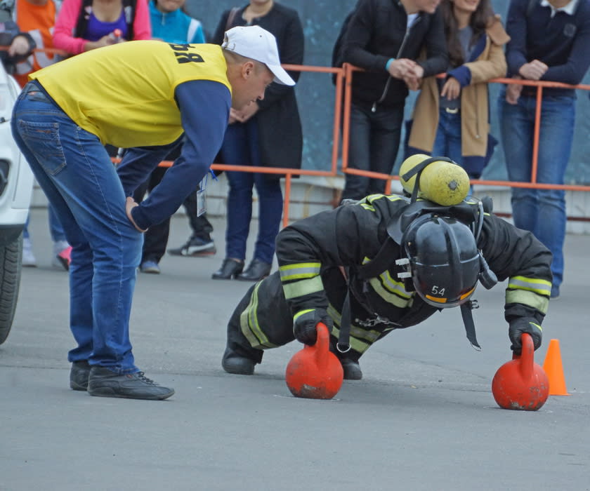 Участники соревнования в полной боевой амуниции отжимались, бежали с гирями, перетаскивали утяжелённые песком пожарные рукава весом 50 килограммов и 70-кило­граммовые манекены. Тянули внедорожники и переносили шины, весящие по 120 килограммов. Наравне с пожарными и спасателями все этапы кроссфита проходила группа добровольцев, состоящая из четырёх человек. На всех этапах за командами внимательно следили судья, а также сотрудники экипажа медицины катастроф, помощь которых, к счастью, не понадобилась.