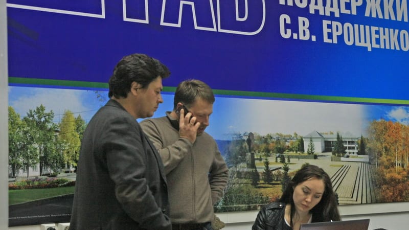 В начале одиннадцатого мы вернулись в штаб Сергея Левченко. Самого кандидата снова не застали. Однако на этот раз визит был более успешным, к нам вышел второй секретарь обкома КПРФ Евгений Рульков. Его телефон разрывался от звонков. При нас позвонили из Мамско-Чуйского района. «Впервые организовали вылет на Маму, наших членов комиссии, наблюдателей немножко там закрыли, – пояснил он. – Уже посчитано практически всё, даже на Маме почти равное количество голосов. Хотя там было высокое преимущество Ерощенко». В обкоме было тесно – шёл параллельный подсчёт голосов.