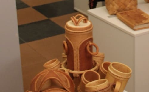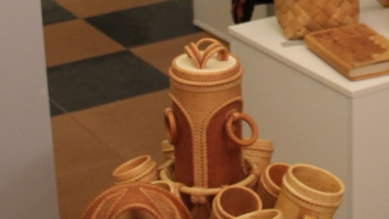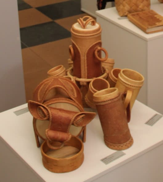 Мастер Вера Верхотурова раньше тоже обучала детей. Окончила Иркутское училище искусств, а затем по настоянию друзей на базе техникума обучалась вместе с детьми берестяному промыслу. Потом сама начала учить этому делу ребят. «Когда в 1990-х годах перестало хватать денег на жизнь, пришлось заняться другой работой, а береста стала моим хобби. Но времени на неё уже совсем не было, – рассказывает Вера. – Как оказалось, береста предательство не прощает. Сейчас я начала к ней возвращаться, и мне приходится заново её для себя открывать. Чтобы создать какую-нибудь вещь из этого материала, мне нужно уже «попотеть», будто я только-только начала этим заниматься. Но потихоньку мы с берестой договариваемся». Вера делает из бересты бижутерию, традиционный туес, вышивает полотна берестяной лентой. А на выставке в краеведческом музее она представила своих берестяных кукол.