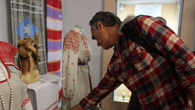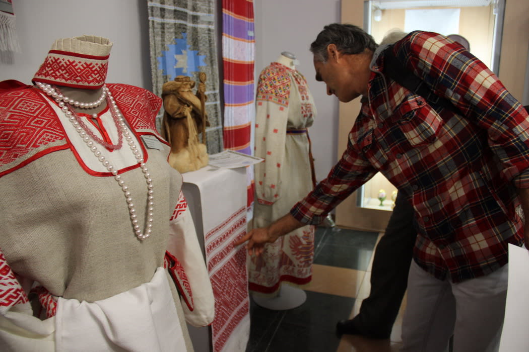 Несмотря на то что в «Хороводе ремёсел» выставлены работы 83 мастеров, экспозиция получилась совсем не перегруженной. В музейной студии экспонаты уместились в двух выставочных залах. «На выставке доминируют ткачество и вышивка. Появились замечательные народные костюмы. Наши мастера взяли музейные образцы, фотографии и по ним создали костюмы, в которых ходили сибирские переселенцы. Также значительная часть экспозиции состоит из берестяных и флористических работ. Представлены прекрасные украшения из кожи, – говорит искусствовед Ирина Бордовская. – А вот с лоскутным делом у нас в области проблематично, оно не очень развито. Вот и на выставке всего один экспонат, хотя по России лоскутная техника – очень актуальное и модное ремесло».