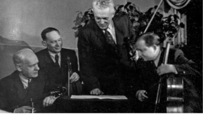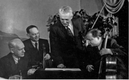 Исидор Каганов (1-я скрипка), Михаил Погодаев (виолончель). 1955 год