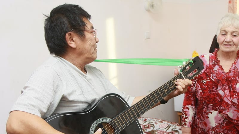 Общение с жителями дома для нас начинается с третьего этажа. В первую комнату мы заходим с осторожностью. «Когда мы были здесь в прошлый раз, – вспоминает председатель профкома, – хозяйка комнаты, в которой мы сейчас находимся, болела, была не в настроении». Опаска забывается, как только мы видим сияющие глаза этой самой женщины и добрую улыбку её мужа. «Заходите! Заходите! Мы вам сейчас споём!» И вот он уже направляется к шкафу, достаёт гитару (запылиться струнная подруга не успела, без неё не обходится ни дня). Он не просто задорно и весело поёт «Ой мама-мама-мама, люблю цыгана Яна», но ещё умудряется приплясывать на месте. Настоящий юнец, полный жизненных сил и любви. Его избранница не уступает, тоже подпевает «молодому» супругу. «Мы просто спелись, вот и всё!» – говорят они про себя.